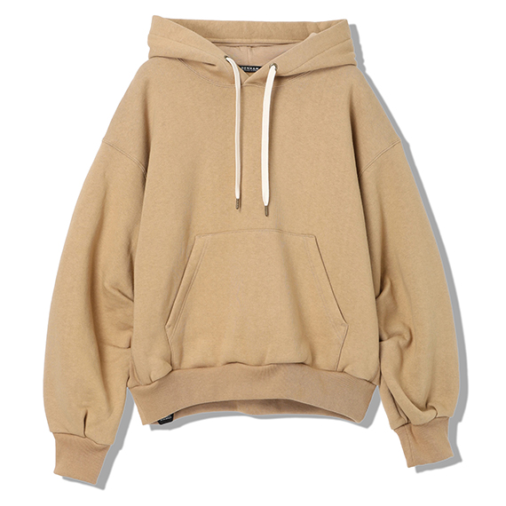 落ち感のあるシルエットと袖口のタックが魅力的なフーディー。フロントにはカンガルーポケットを施し、小物類を収納することができます。袖口にあしらわれたシザーズマーク刺しゅうもポイント。同シリーズのボトムスと組み合わせて着用するのもおすすめです。