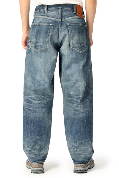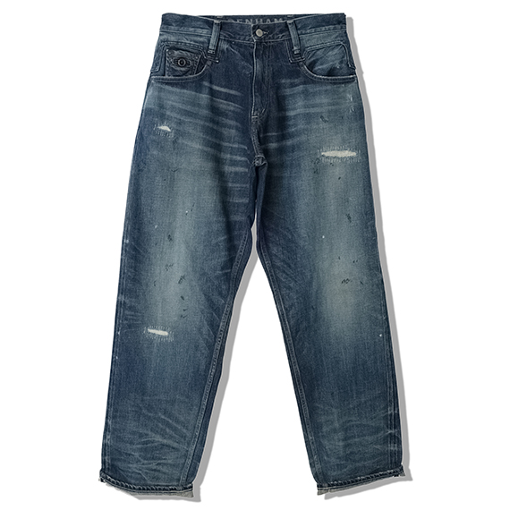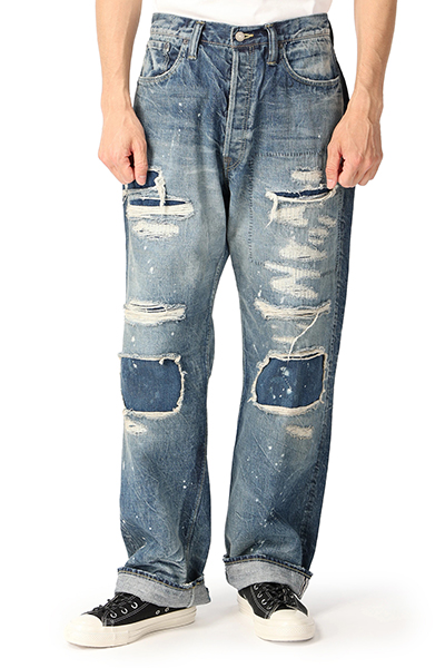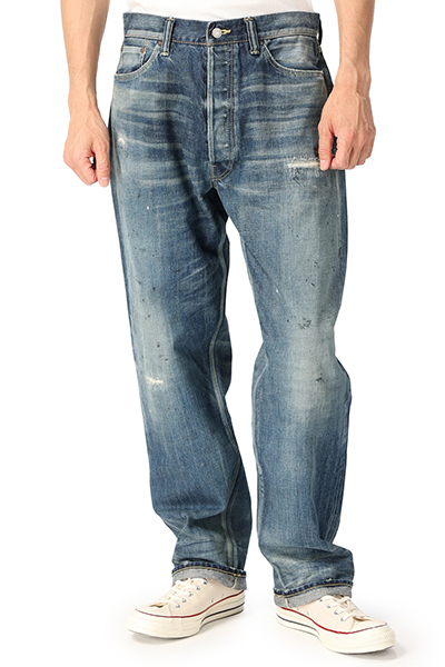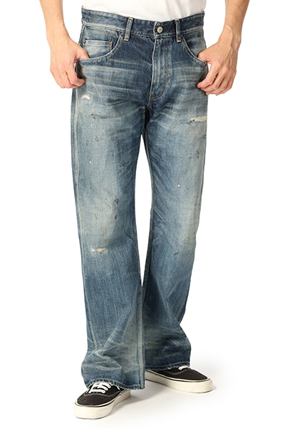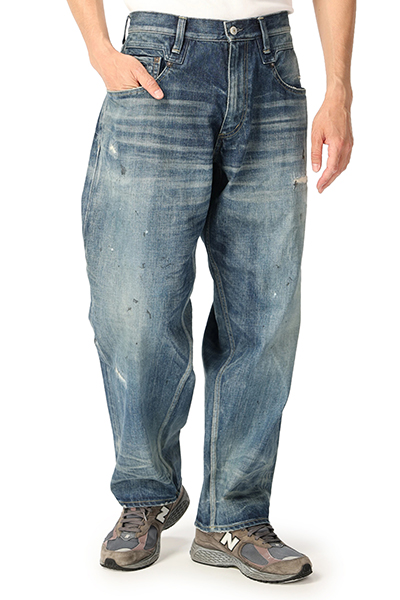ヴィンテージライクな風合い漂うダメージ加工が施されたデニムパンツ。ゆとりのあるワイドシルエットになっているので、締め付けがなく快適な着心地を演出します。着脱が簡単なジップフライ仕様。Tシャツやカットソーと合わせたラフなコーディネートがおすすめです。