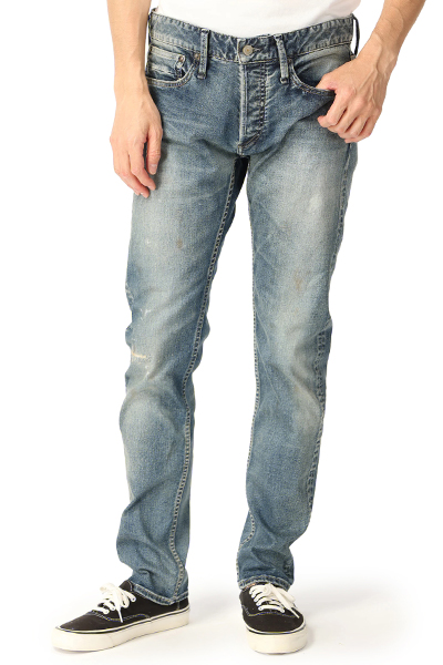長くはきこんだようなヴィンテージな風合いが魅力のデニムパンツ。バックスタイルもキレイに見せてくれるスリムストレートシルエット。深めのフロントはボタンフライ仕様に。味わいのある色落ち感やヒゲなどが大人のカジュアルスタイルを演出してくれます。
