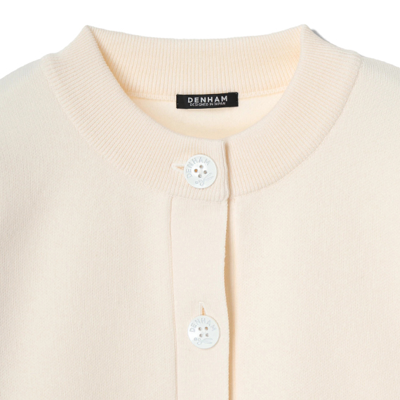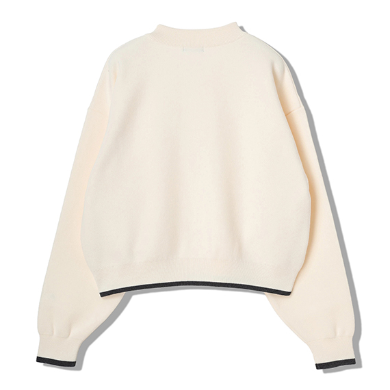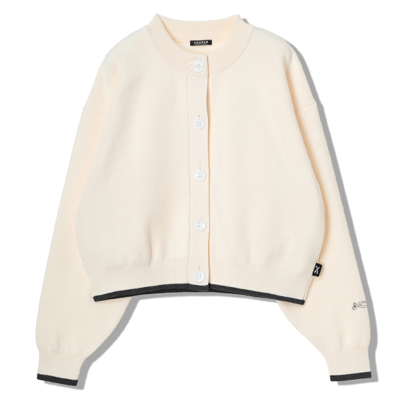 裾や袖口の配色ラインが表情感を演出するニットカーディガン。ネックラインに沿うような首元が心地よいフィット感を実現します。フロントボタンや袖に描かれたシザーズマークがポイント。どんなボトムスにも合わせやすく、コーディネートの幅が広がるアイテムです。