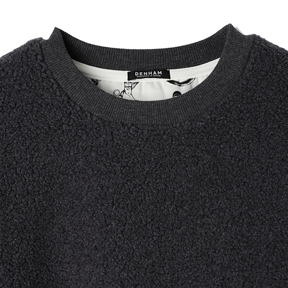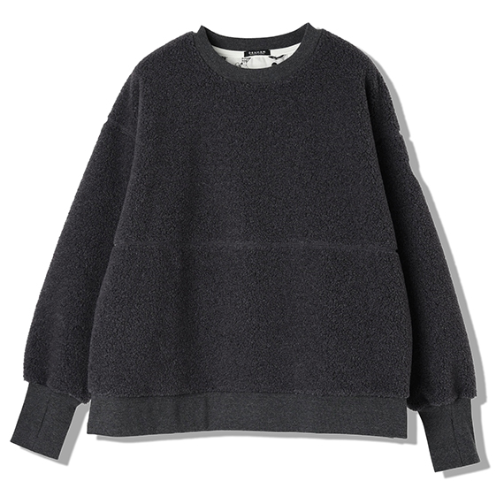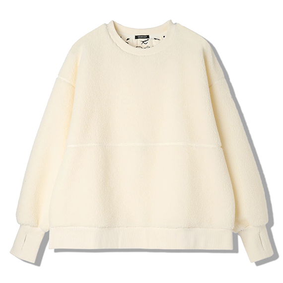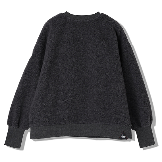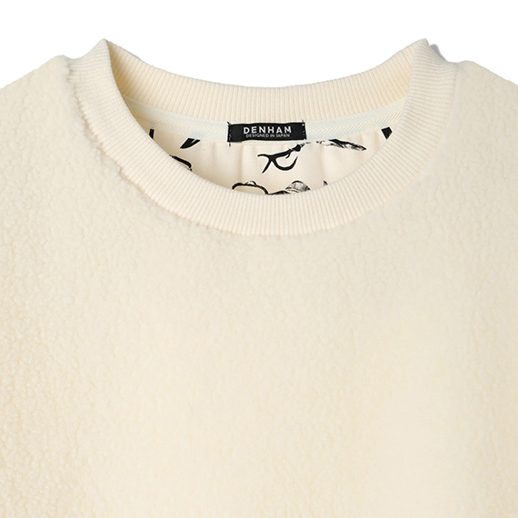 シーズンムードも高まるボア生地で仕立てられたプルオーバー。ピリングの発生がおこりにくいボア生地を採用しているのもポイントです。背裏にはデニムの袋布にも使用しているシザープリントスレキが施されています。袖にあしらわれたシザーワッペンもアクセントをプラス。裾リブサイドのスリットと、サムホールがトレンド感を演出します。