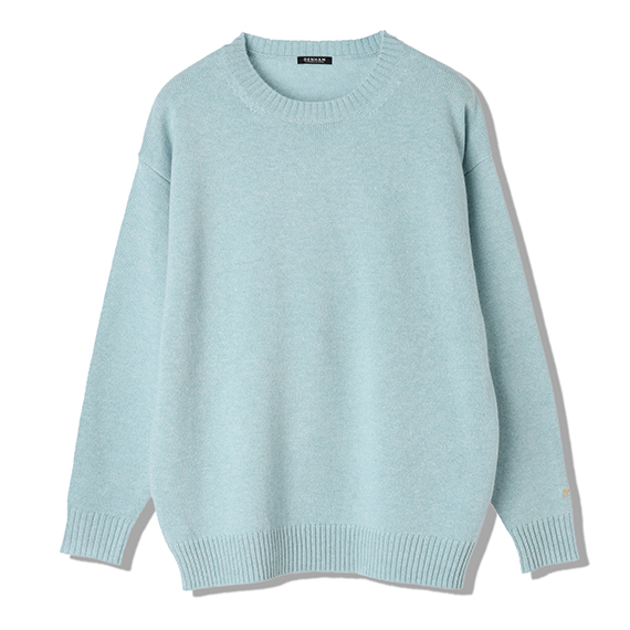 肌触りの滑らかなカシミヤとウールをブレンドした生地で仕立てられたトップス。袖口にはシザーズマーク刺しゅうをあしらい、さりげないワンポイントになります。どんなスタイリングにも取り入れやすいクルーネックのデザインも魅力的。同シリーズのボトムスと合わせたコーディネートもおすすめです。