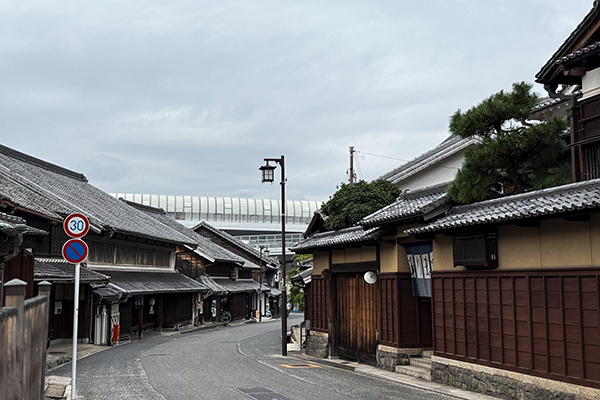 有松町史によれば、1610年名古屋城築城の頃、築城に参集していた人々の中に九州豊後(大分県)の者が絞り染めの珍しい手ぬぐいを持参していることに気をとめた、竹田庄九郎がその製法のヒントを得たと言い伝えられています。その頃より手法は研究され、はじめのうちは手ぬぐいに絞り染めをし、軒先に吊るして販売を開始。やがて参勤交代の制が確立したこともあり、旅人や諸国大名が帰国する際に有松に立ち寄り、土産物として絞の反物や手ぬぐいを買い求めたのが有松を有名にした始めといわれています。