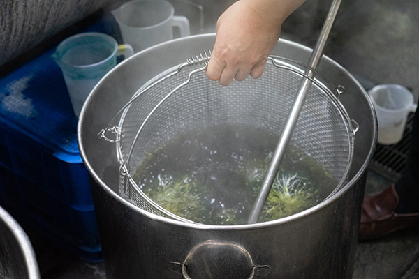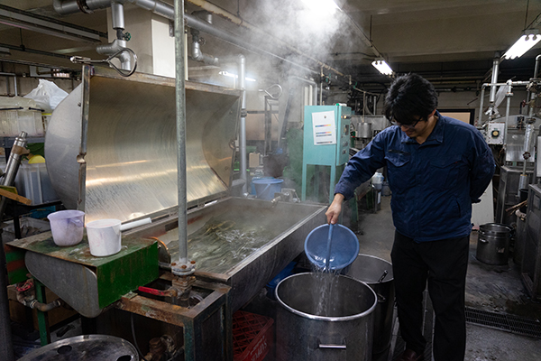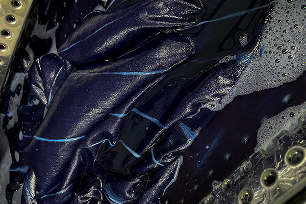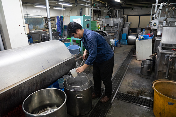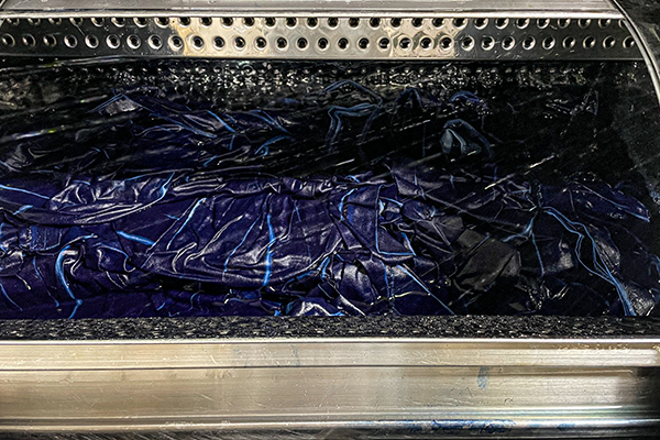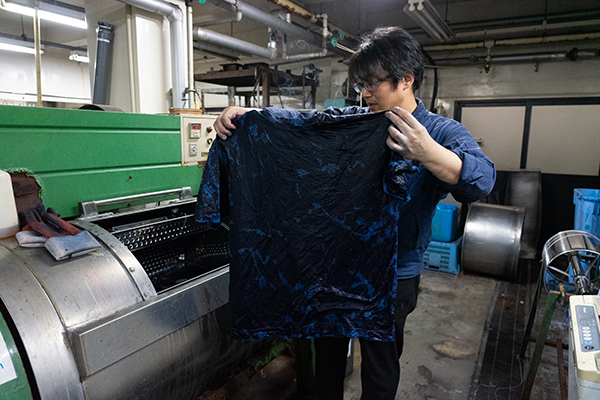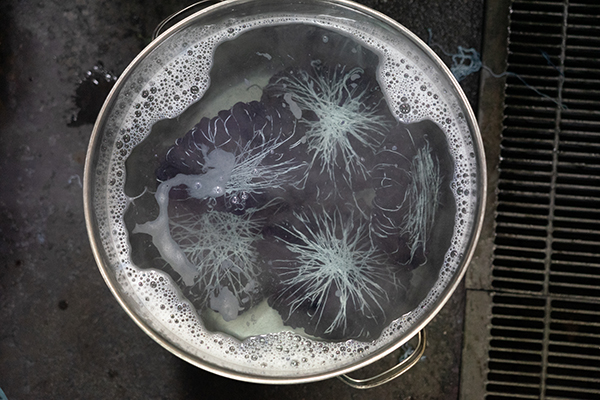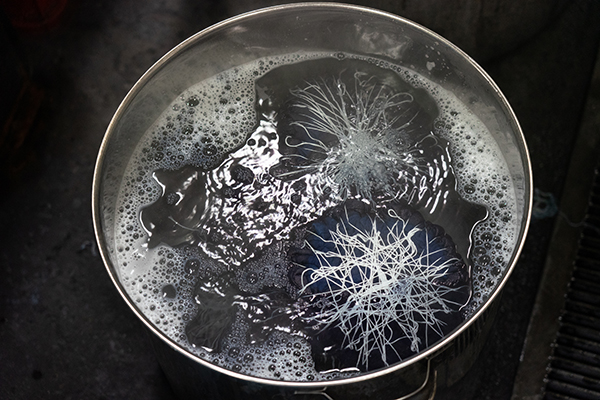 洗いの工程。この工程を丁寧に行うことで、クラッシュ絞りの模様が綺麗に出てきます。