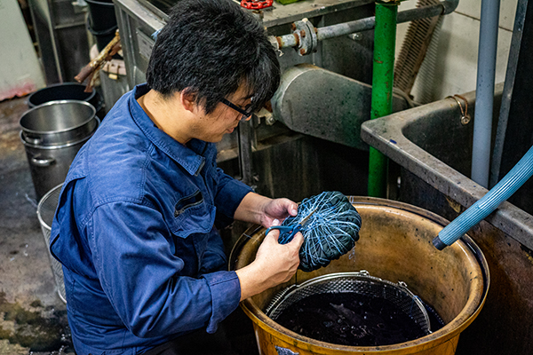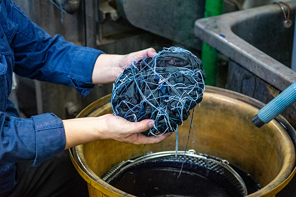 絞りの糸を外し、丁寧に洗いと乾燥を行いできあがります。