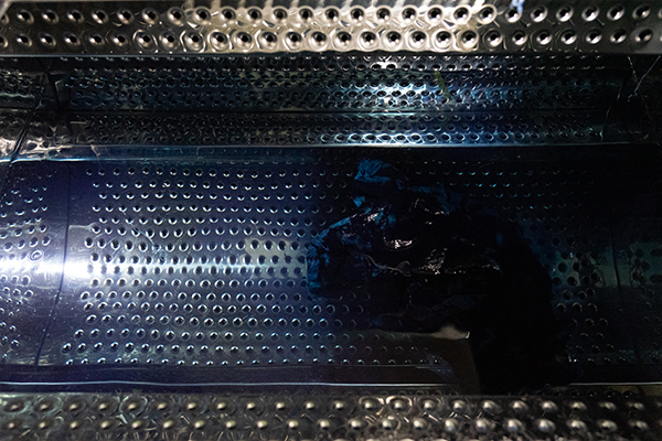 生地の中にある空気を抜く工程。この後に続く抜染工程を綺麗に行うための大事なひと技です。
