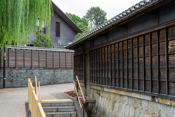 【有松】有松駅を降りてすぐ、小川の音と枝垂れの木が目をひく小道を進むと、「ありまつ」の暖簾が一軒一軒、軒先に飾られた、江戸時代の面影を残す街並みが広がる「有松」。絞り染めは、伝統工芸として今も受け継がれ、繁盛した商家の街並みは、往時の繁栄を今に伝えています。