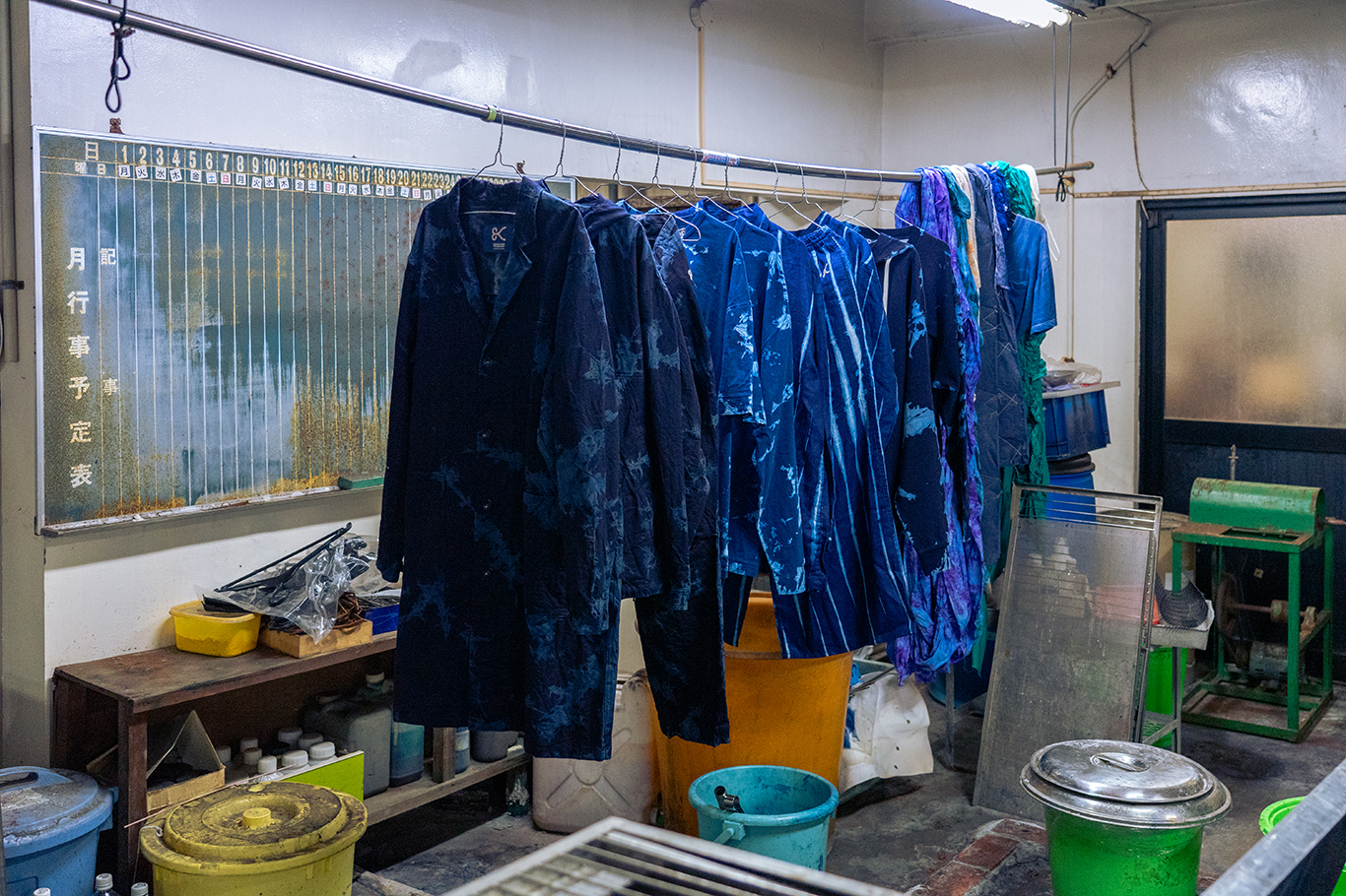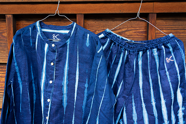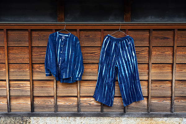 有松絞りを中心とし、染めや抜染などの加工を一貫して行う久野染工場とともに、完成させたa IN U COLLECTION -ARIMATSU-。クラッシュ絞りを採用する際に、「インディゴの泡が弾ける」イメージでの製作をお願いしました。