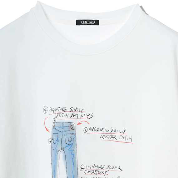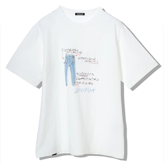デニムレシピのプリントが目を惹くTシャツ。こだわりのディテールが描かれたデザインは、コーディネートのアクセントとしても重宝すること間違いなし。シルエットはベーシックに仕上げ、どんなアイテムともバランスの良いスタイリングに決まります。デニムと合わせて着こなしを楽しみたい1着です。