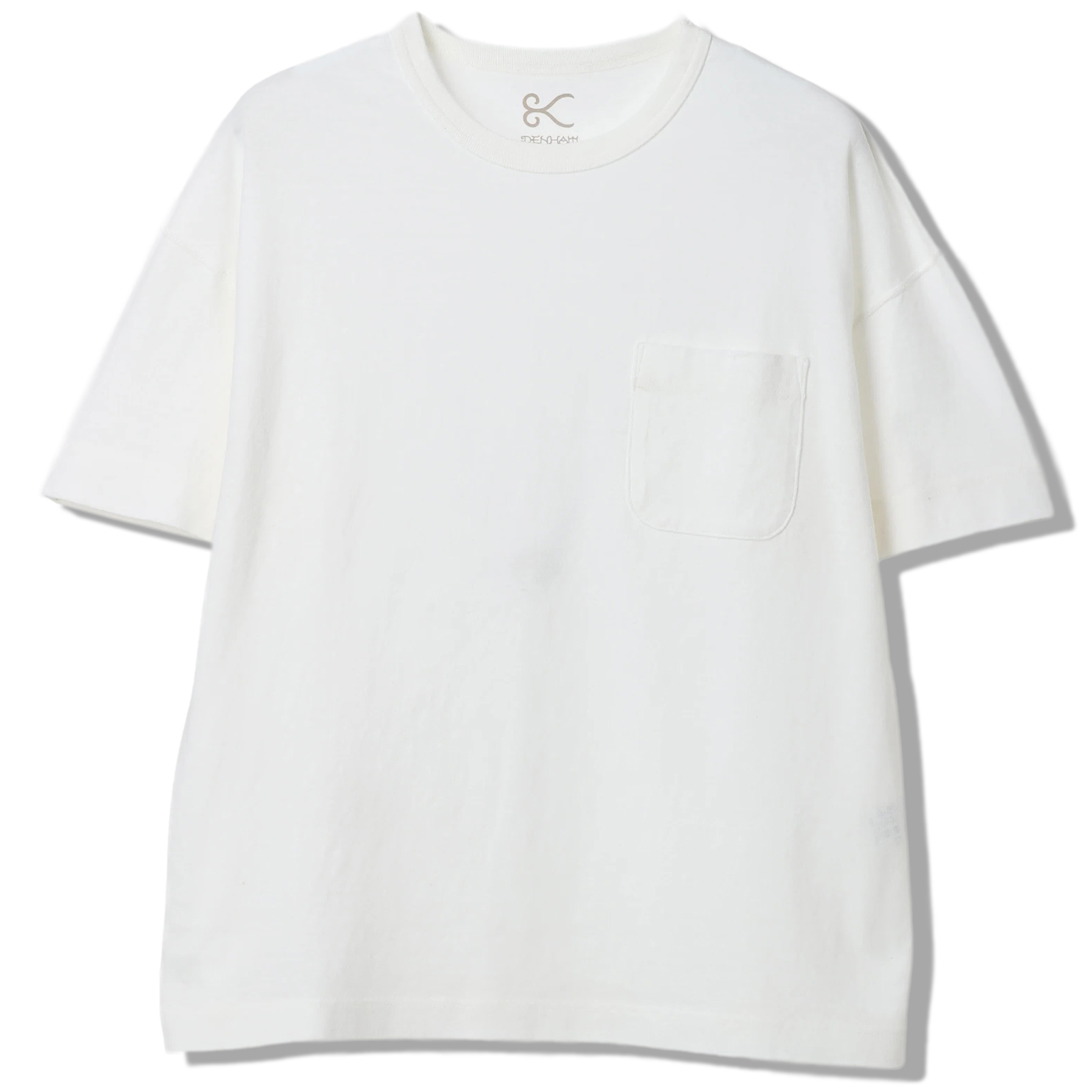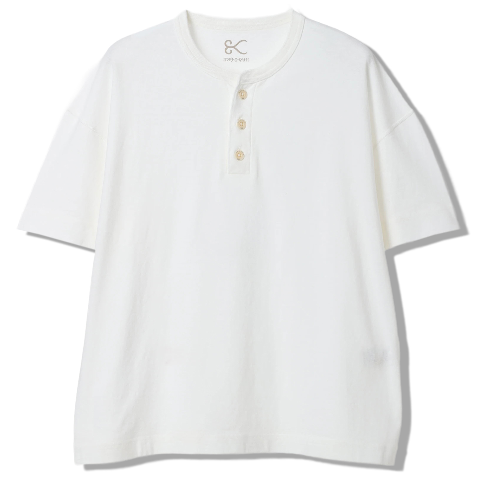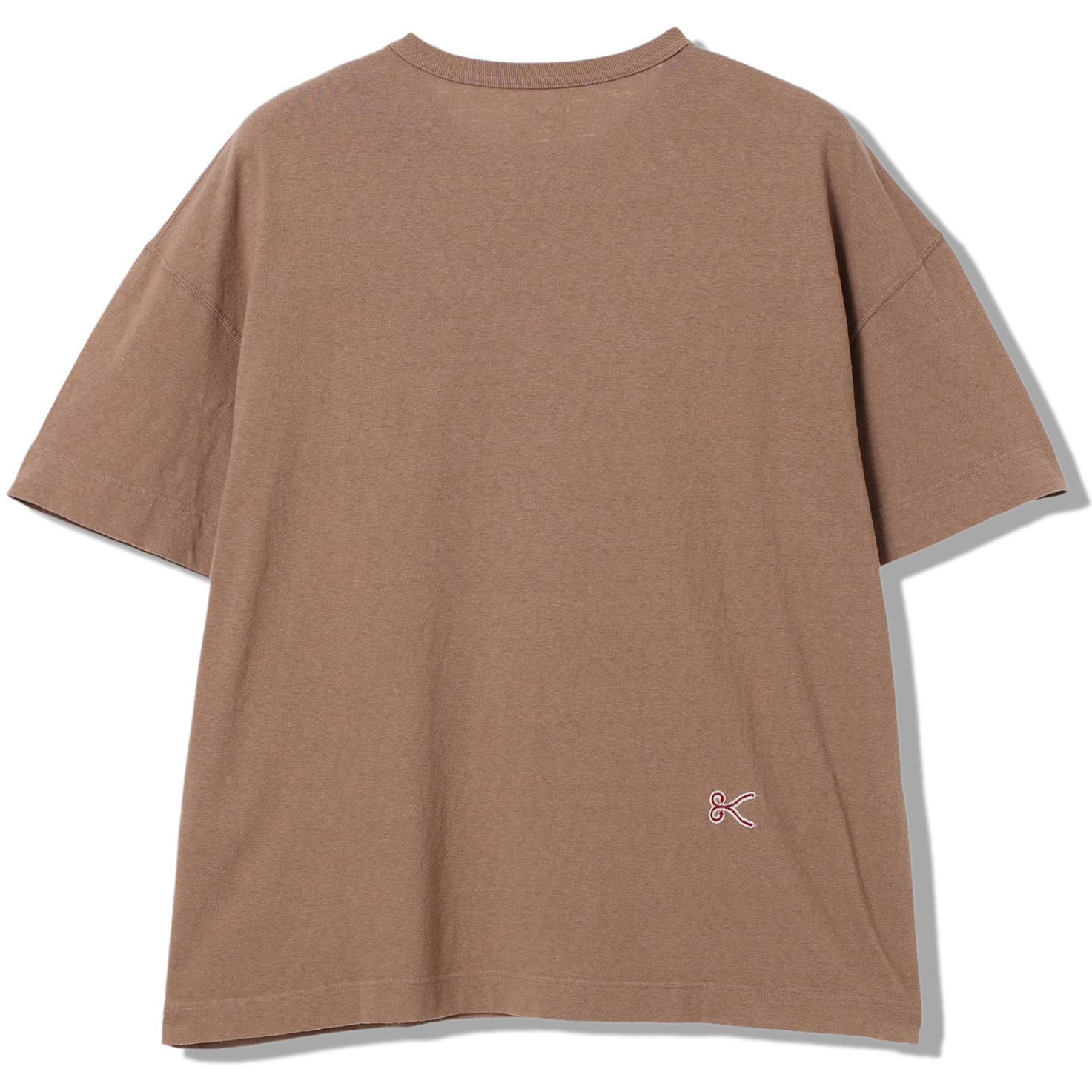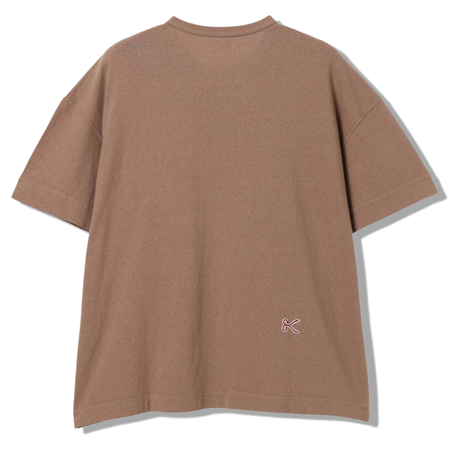 製品にしてから丁寧に洗いをかけて、お客様が着用された時にすでに馴染んでいるような、⾃然なムラ感を⽣かしたナチュラルなスラブ天竺のカットソー。製品にしてから洗いをかけ、10⽇間の天⽇⼲しをすることにより、独特で柔らかな質感をもたらします。シンプルながらもこなれ感のあるルーズなシルエットが特徴。製品の右後⾝に施されたハサミの刺繍は、独⾃のデザインであり、製品に個性と特別感を与えています。