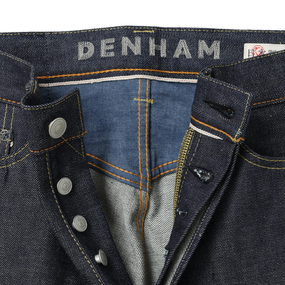 このデニム生地は、リジッドの状態から自ら育てていく楽しみ方と、岡山の職人によるデンハム独自の洗い加工によって完成された風合いを楽しむ方法、2つのヴィンテージ体験を提供します。