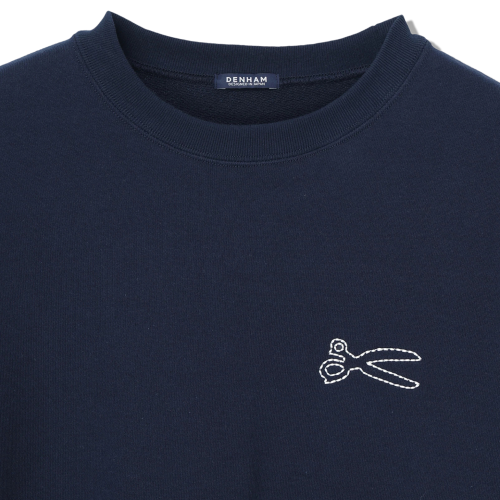 胸元にあしらったハサミのステッチが、シンプルなデザインにほんの少しのアクセントをプラス。素材には40/2天竺を採用し、双糸仕立てならではのしっかり感と、1枚でも心地よく着られる程よい厚みを備えています。ナチュラルな着こなしにすっと馴染み、季節を問わずデイリーに活躍してくれるアイテムです。