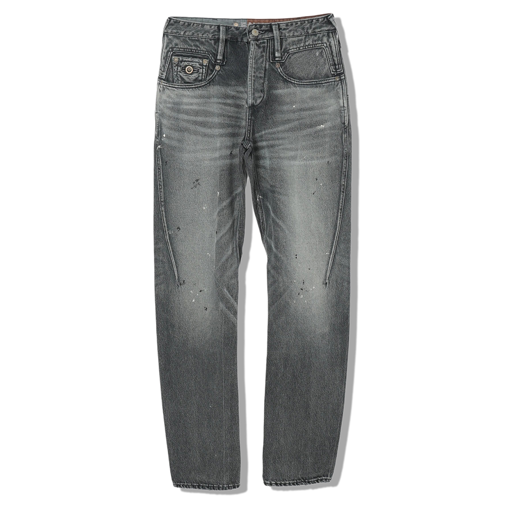 1849年度からのゴールドラッシュが起こったアメリカ、カリフォルニア州の炭鉱で 働くワーカー達が生から着用したジーンズを再現して開発された洗いです。 労働者が実際に着用していたものを基にしており、彼らが直面していた厳しい自然環境を反映しています。 このジーンズはLAの乾燥した気候の中で働く労働者の姿を再現し、趣のある風合いを生み、このような環境下での着用によるヴィンテージ洗いの独特の質感と色合いを生み出し、再現しています。 深い色合いと独自の風合いが特徴で、特に、後ろポケットにはシガレットケースが収められた跡を再現し、当時の労働者たちのライフスタイルの一部を象徴しています。このようなディテールが、ジーンズにリアリティと歴史的背景を与えています。 この貴重なヴィンテージ洗いは、ただのファッションアイテムではなく、歴史と物語を持つ一品です。着用することで、 ジーンズがアメリカからこの世の中に誕生した時のことを思い出しながら着用することで、彼らの精神を現代に引き継ぐこと が楽しめる貴重な1本となっています。